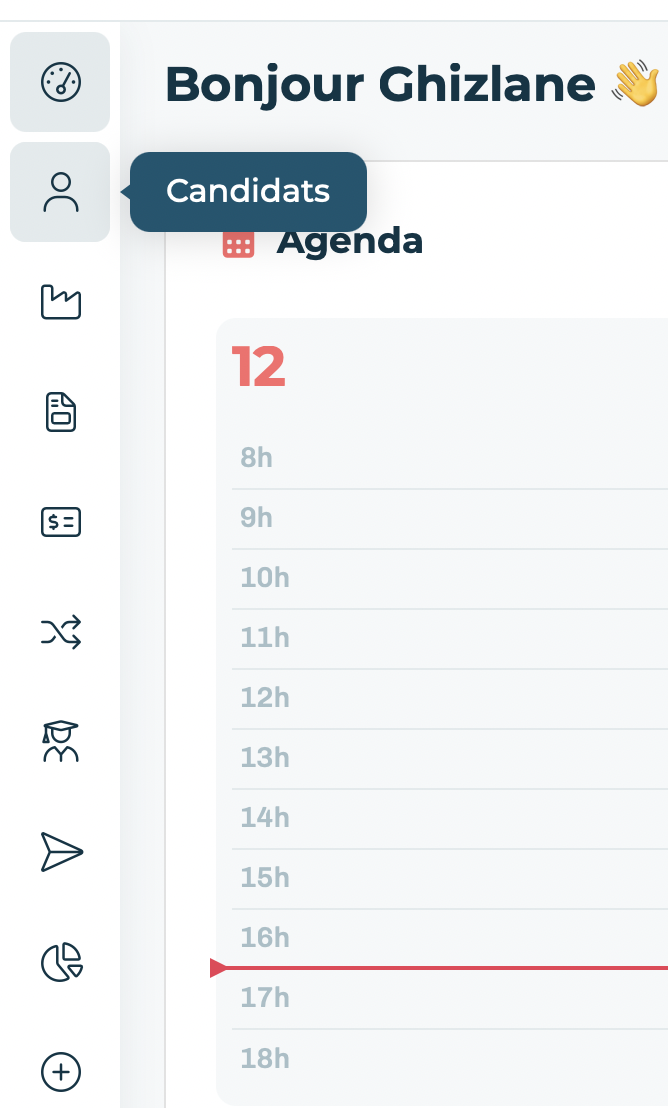 Rendez-vous dans le menu principal, onglet "Candidats", puis accédez à la recherche candidats.