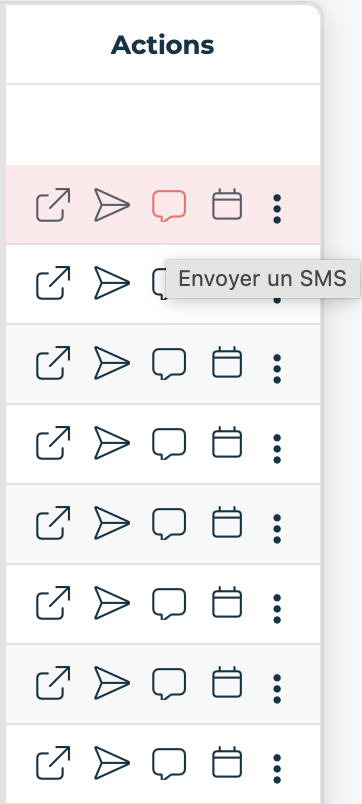 👉 Sélection individuelle : si un seul candidat est concerné, vous pouvez utiliser la colonne Actions et cliquer directement sur l’option d’envoi de SMS 📱.