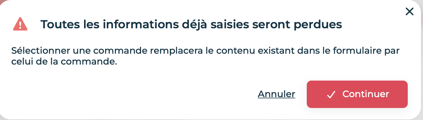 ⚠️ Attention : si vous associez une commande après avoir commencé à remplir l’offre, les informations déjà saisies pourront être remplacées par celles de la commande sélectionnée.