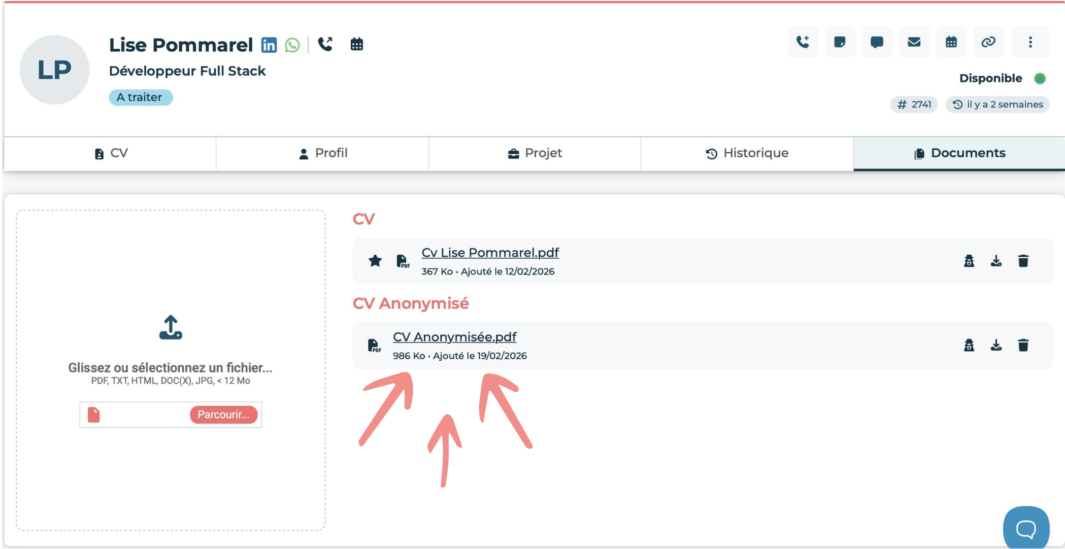 Il est recommandé d’utiliser un CV anonymisé (mettre le lien) avant l’envoi afin de garder les données personnelles du candidat. 🔒