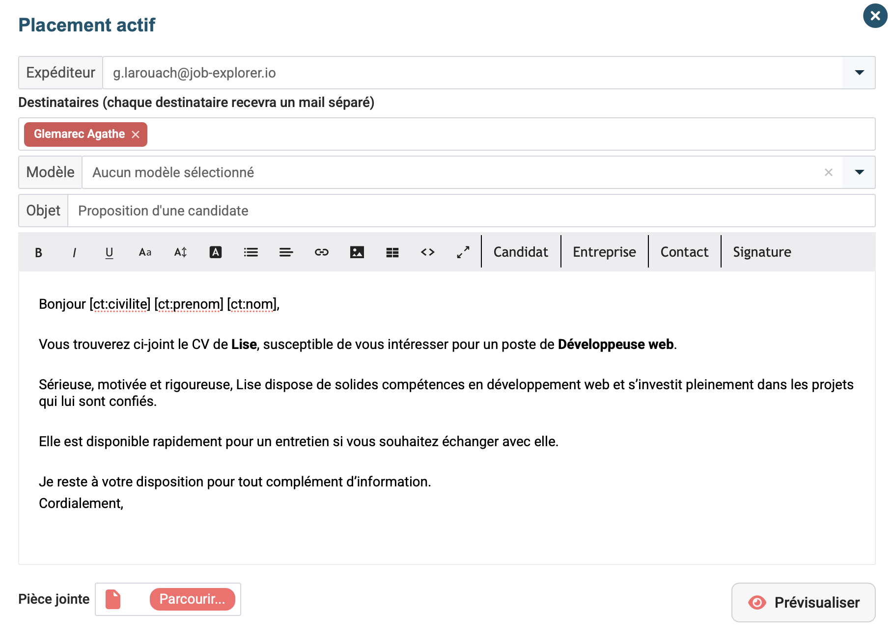 Vous pouvez consulter le CV avant de l’envoyer. Une fois satisfait, cliquez sur « Envoyer ».