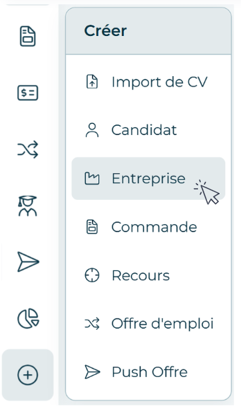 Dans le menu principal, allez sur l'icône "+" puis cliquez sur "Entreprise" :