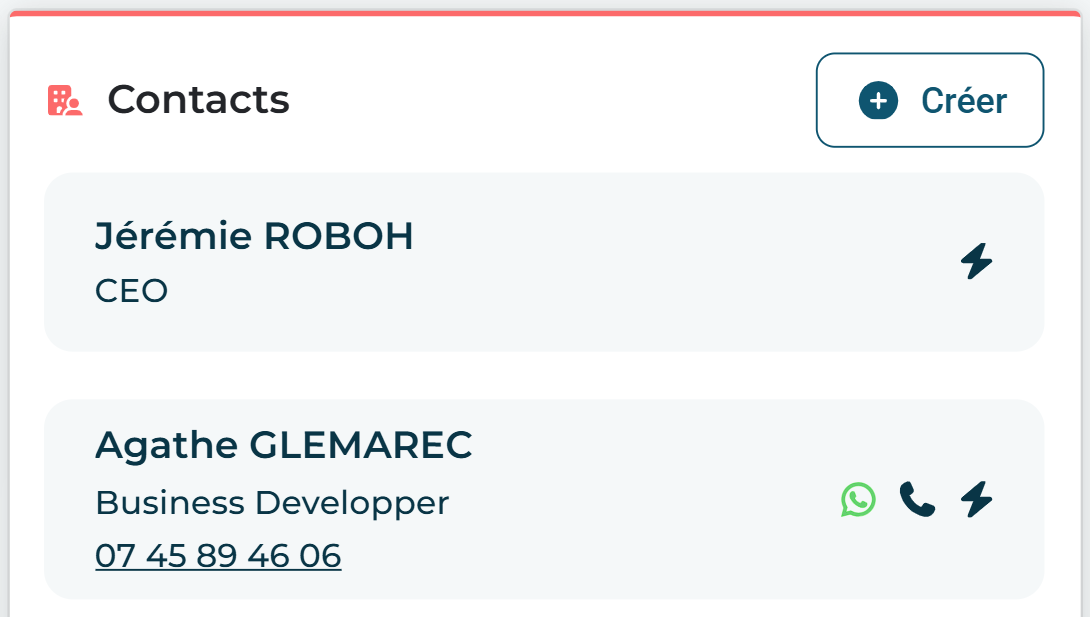 Par la suite, il sera automatiquement visible dans la colonne Contacts, à la suite des fiches déjà existantes.