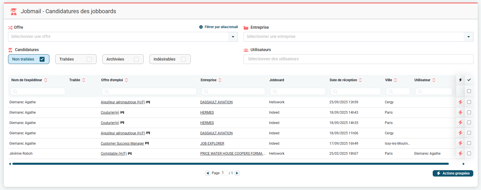 🚀 Vous pouvez aussi traiter en masse vos candidatures en utilisant la seconde colonne : (case à cocher) et en cliquant sur "Action groupée"