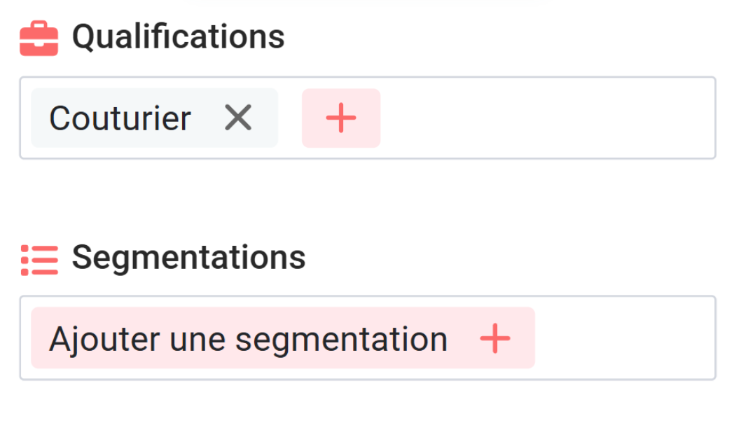 La qualification et la segmentation du candidat correspondent à celles renseignées sur l'offre, mais vous pouvez les changer ou en ajouter.